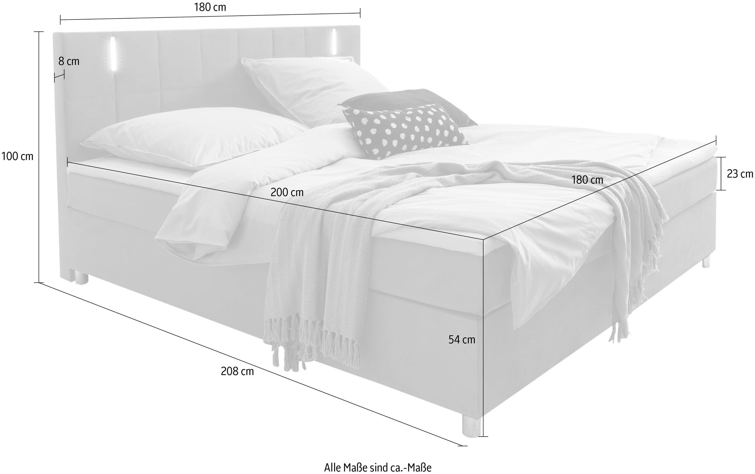 Das bett ist für matratzen in den massen 160 x 200 cm geeignet.